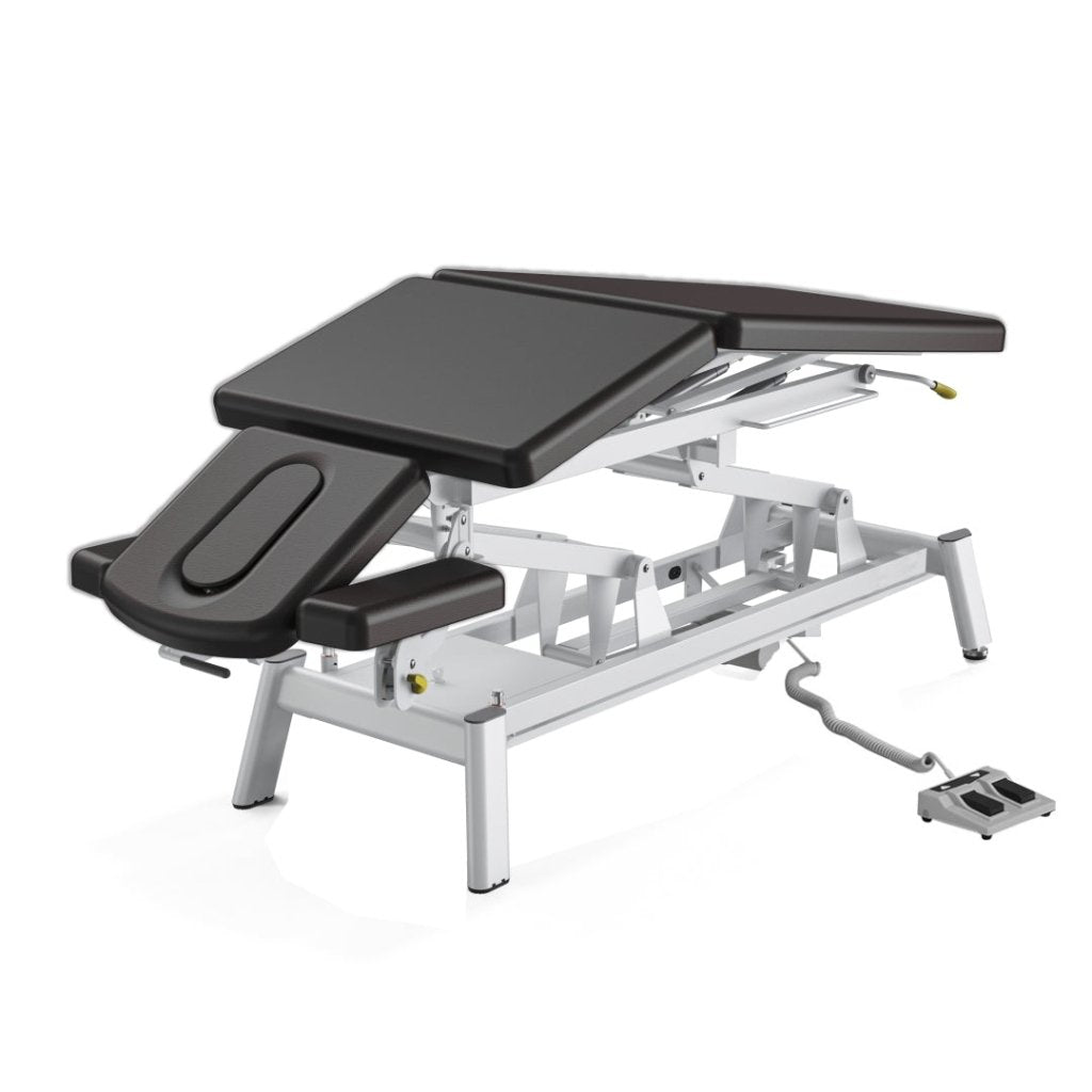VIVINOVA® German Dewert Infinity Electric Height Adjustable Physiotherapy Equipment Massage Table multi-functional diagnosis and treatment bed offers more posture adjustments. In addition to the - 75° to 40 ° pneumatic head section adjustment and the 0°~80° tail section angle adjustment, it also has a 40 ° middle section adjustment. It providesboth users and doctors with a comfortable posture regardless of whether the user is in a sitting position, supine position, or prone position.